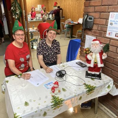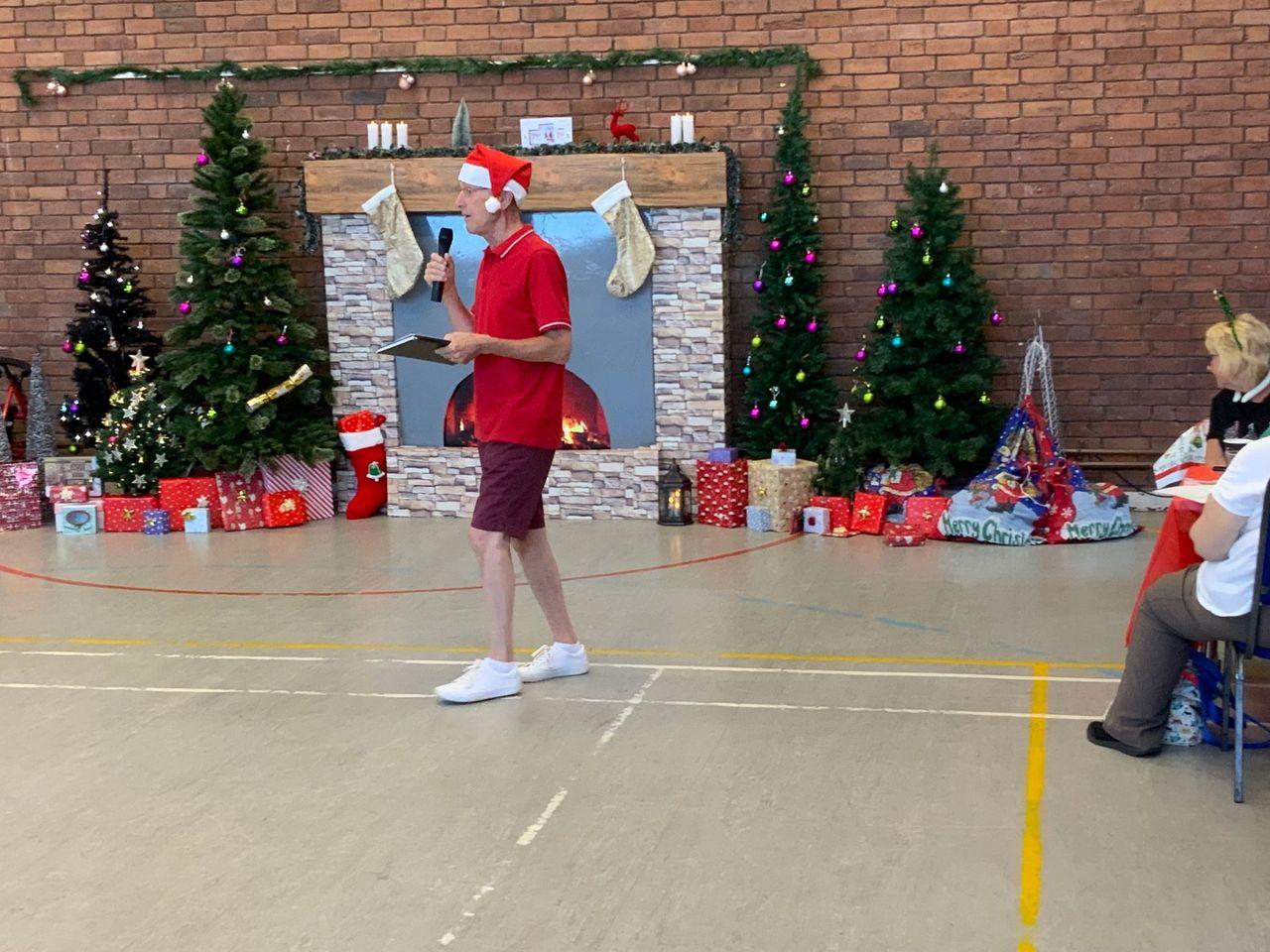One photo shows members of our Disabled Club enjoying the event. Another shows the team of volunteers who helped make it all possible. Well done, you volunteers. And there’s a photo of Santa trying to explain why he’s not wearing his traditional outfit, and why he has shaved his beard off, and how he’d managed to lose so much weight since Christmas!”