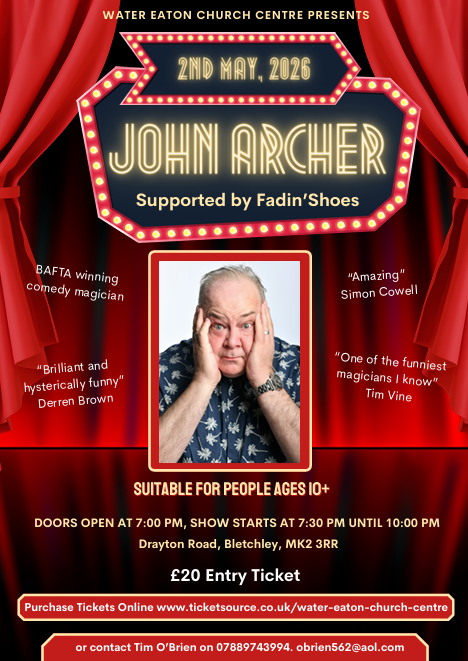 The great John Archer is coming to the Water Eaton Church Centre on 2nd May!